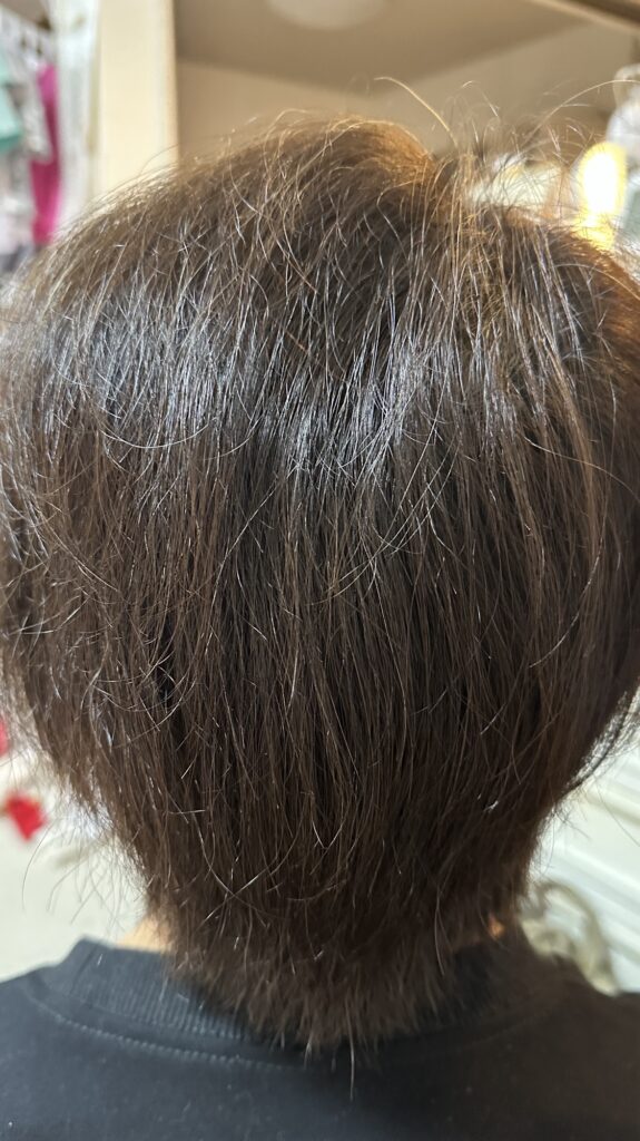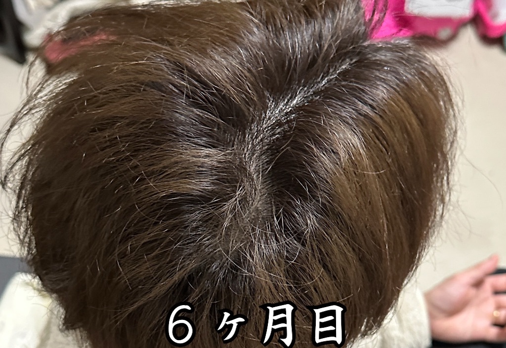 ついに!自分でも明らかに変化を感じられるようになりました。つむじ周りの地肌の透け感が減り、髪全体の密度が増してきました。