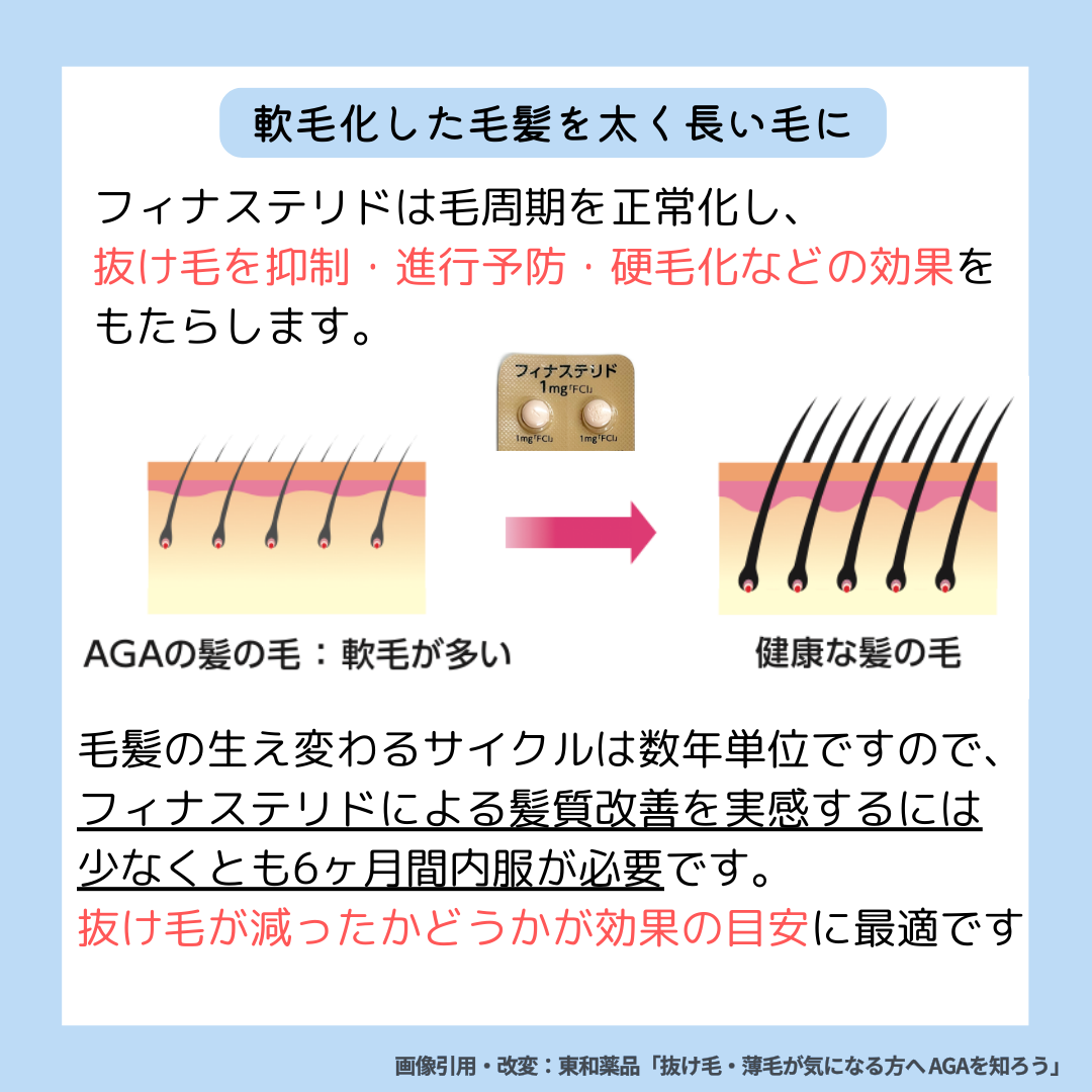 注意してほしいのは、フィナステリドは飲んですぐに魔法のように薄毛が治る薬ではないということ。